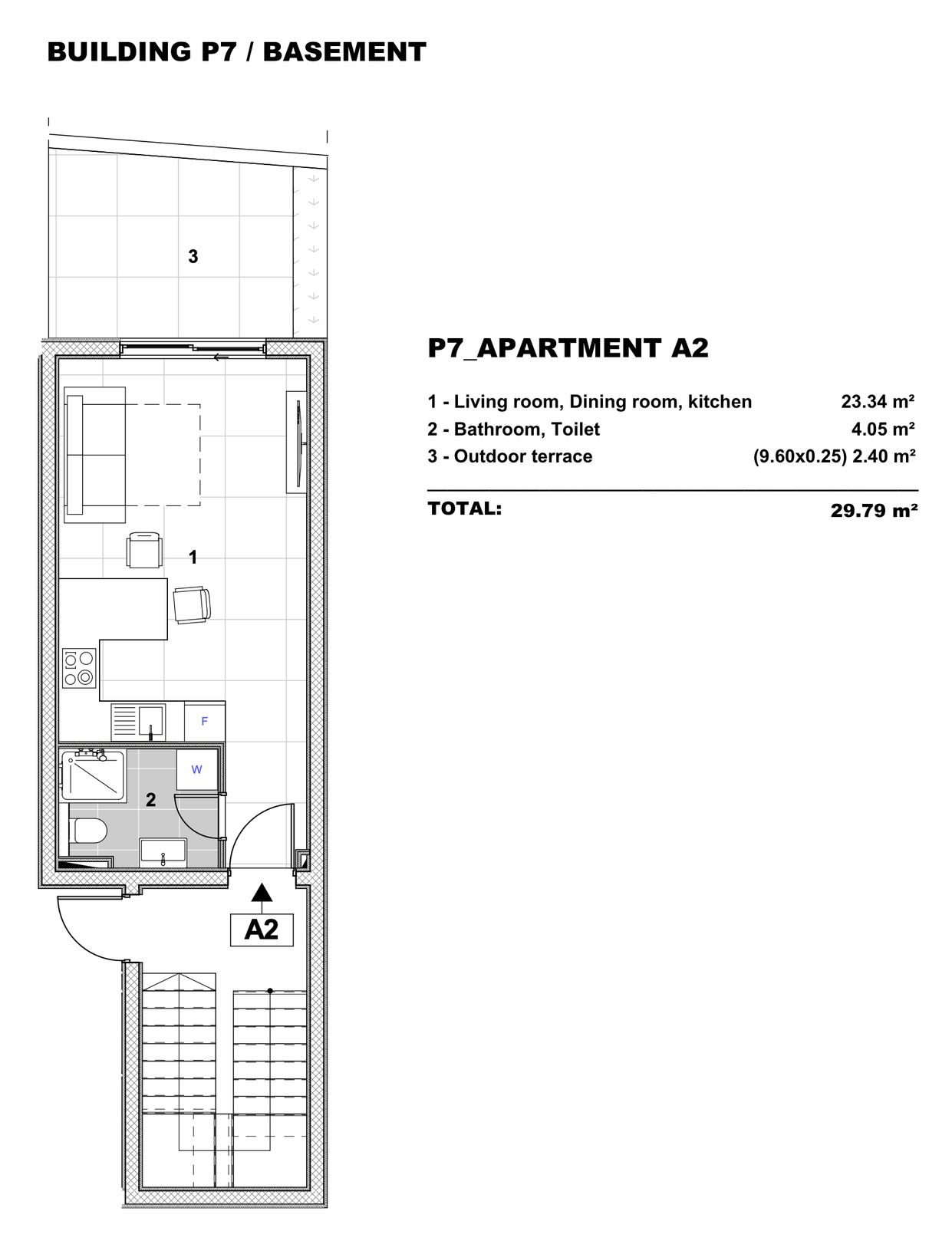 3 - Outdoor terrace ((9.60x0.25) 2.40 m²